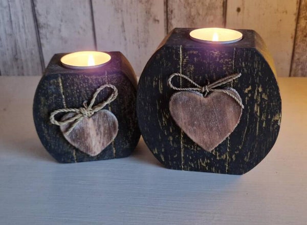 Theelichthouder (waxinehouder) rond + hart Zeer mooie vintageset van 2 stuks
