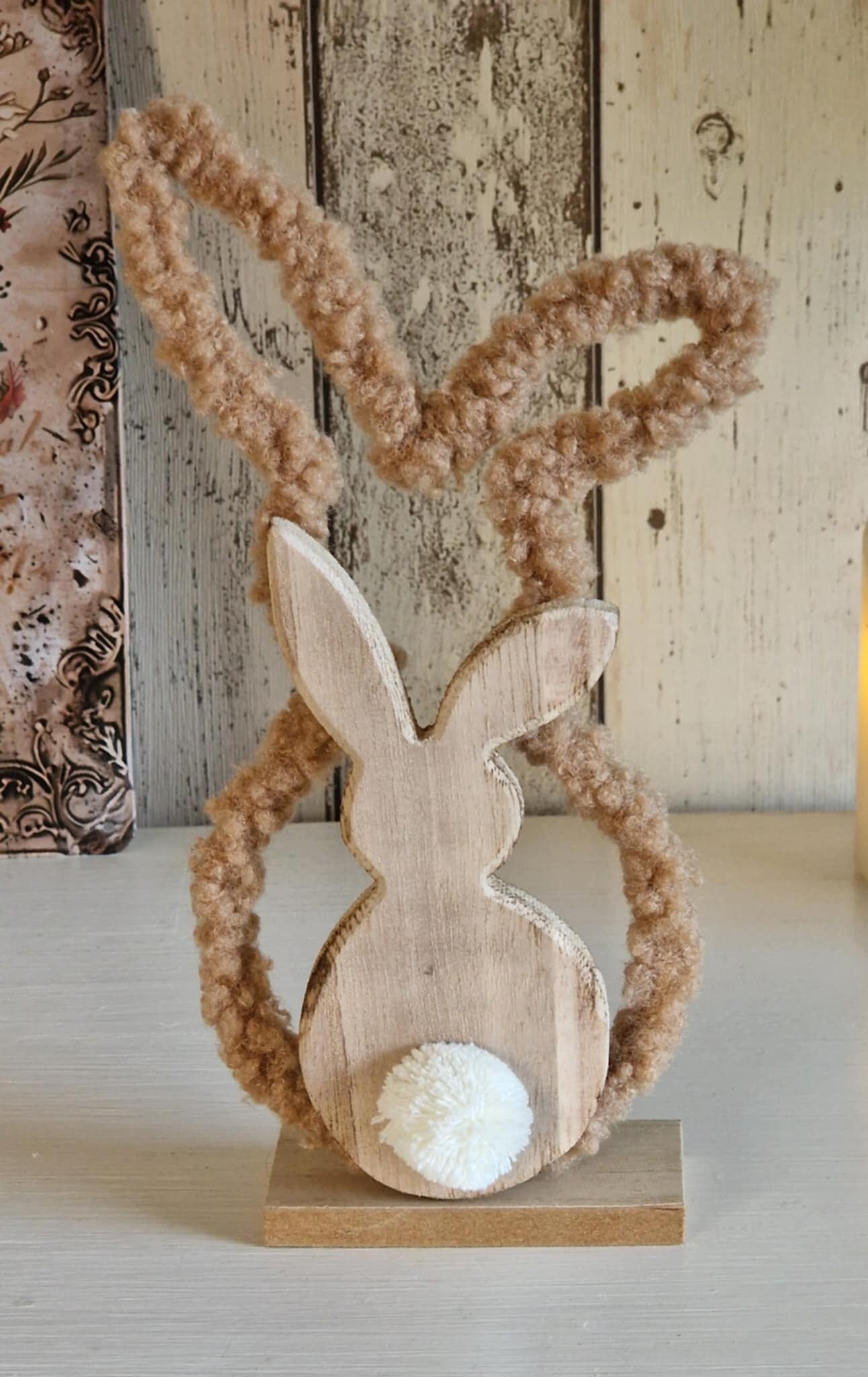 Houten konijnenstandaard met wol rond (wit of bruin)
