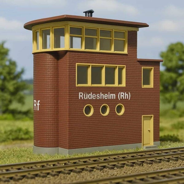 Het seinhuis is geïnspireerd op de echte seinpost in Rüdesheim am Rhein, gelegen aan de schilderachtige Rijnroute. Dankzij de fraaie rode baksteenstructuur, detailrijke ramen en de typische hoogbouwvorm met uitzichtruimte bovenin, krijgt je baan een authentieke uitstraling die perfect aansluit bij zowel moderne als klassieke spoorwegscènes.