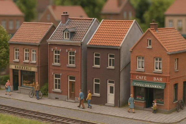 De ‘Familie Vanderwelde’-woning past perfect in een stedelijke of dorpsomgeving op uw modelbaan. Combineer het met andere Artitec-gebouwen om een sfeervol straatbeeld te creëren dat doet denken aan de jaren ’30 tot ’60 in Vlaanderen of Zuid-Nederland.