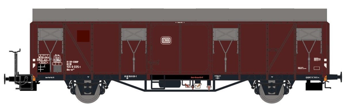 De Deutsche Bundesbahn (DB) gebruikte dit type wagen intensief in de jaren ’70 en ’80 voor het transport van uiteenlopende goederen. Exact-train heeft deze wagon met uiterste precisie nagebouwd: van de kenmerkende remmersbordes tot de scherpe belettering en de natuurgetrouwe kleurstelling van Epoche IV.