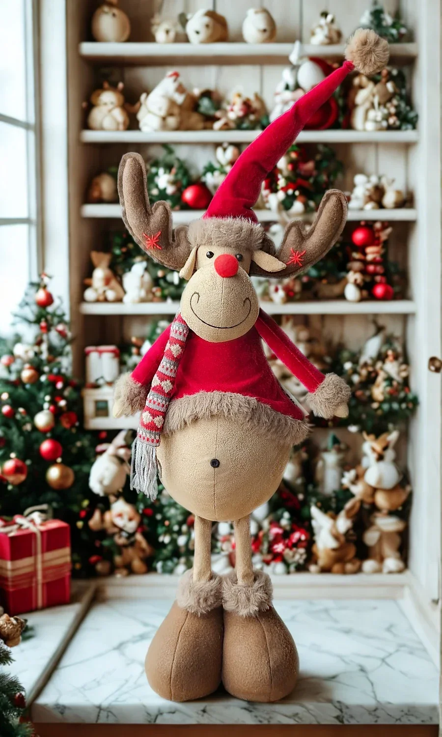 Eland in Rode Velvet Outfit – 80 cm (staand op 2 poten) Van La Galeria
