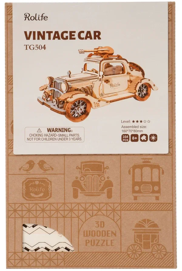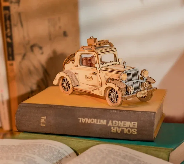 Met Rolife gaan we terug naar vóór de Tweede Wereldoorlog, toen auto's nog stoere spaakwielen hadden in plaats van luchtbanden. Deze tweezitter heeft het stuur aan de 'verkeerde' kant en lijkt op de vooroorlogse Engelse Austin Mulliner. Je wordt meteen verliefd op de vintage uitstraling van dit statische, houten bouwpakket modelbouw. Het heeft gewoon een té schattige neus, spatborden en een reservewiel achterop! Er is nog zoveel te ontdekken aan deze retro-auto, lees je mee?