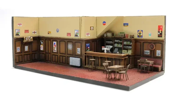 Het model is rijk gedetailleerd en volledig met de hand beschilderd. De warme houten lambrisering, het klassieke bargedeelte, de authentieke posters aan de muur en de losse tafels en stoelen zorgen voor een uiterst realistische sfeer. Zelfs de wanddecoraties, glazen en dranken in het schap achter de bar zijn minutieus weergegeven. Het geheel ademt de charme van een karakteristiek dorpscafé waar de tijd lijkt stil te hebben gestaan.