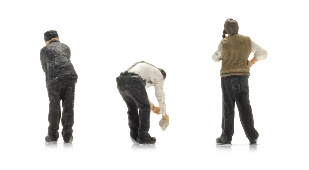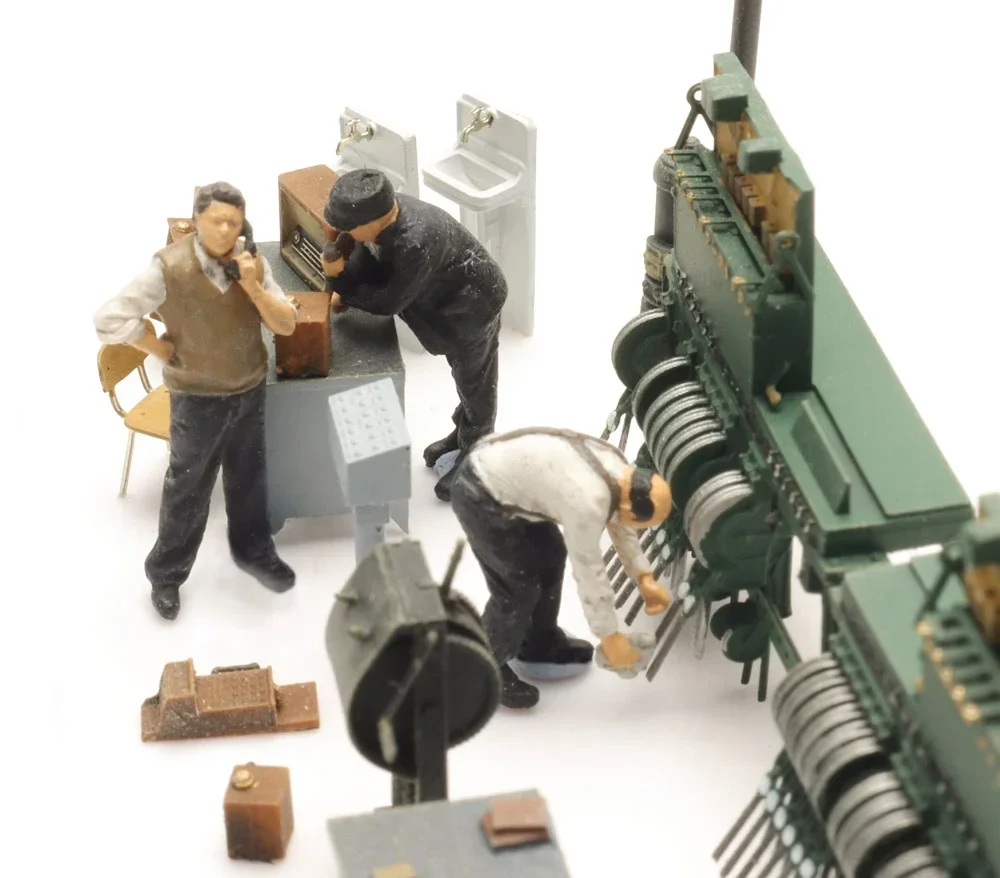 De figuren zijn zeer fijn gedetailleerd en handbeschilderd, met realistische houdingen en kleding die passen bij het klassieke spoorwegbedrijf. Of ze nu observeren, overleggen of bezig zijn met onderhoud: deze seinhuiswachters voegen direct geloofwaardigheid en karakter toe aan elke spoorwegscène.