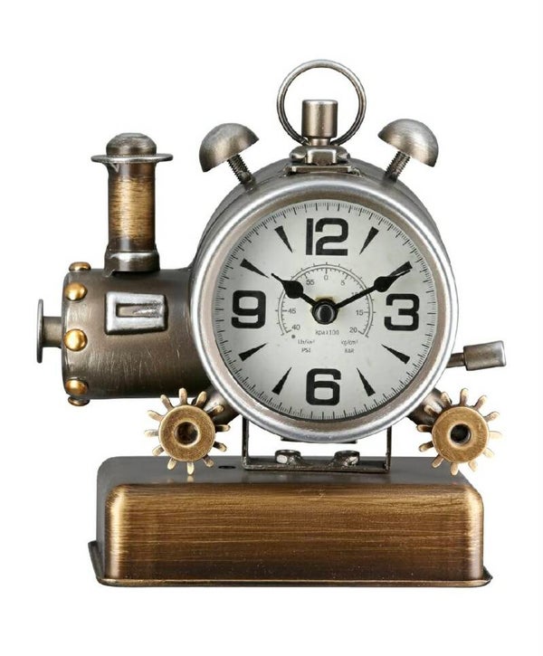 Breng een uniek stukje karakter en nostalgie in je interieur met de Steampunk Tafelklok “Watson” van Gilde. Dit bijzondere ontwerp combineert de charme van een klassieke klok met industriële invloeden en een speelse knipoog naar een vintage locomotief.