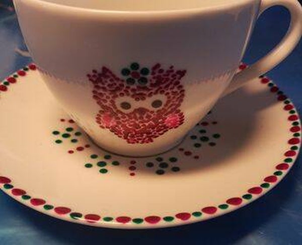 Mooi gedot kopje met ondertas. Vul ze met heerlijke pralines en je hebt een prachtig origineel cadeau. Motief spreken we samen af :)